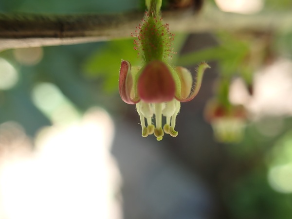 Destijds wist ik niet dat kruisbessen (Ribes uva-crispa) ook in het wild in Nederland voorkomen. Dat besef drong maar stapsgewijs door. Voor het eerst zag ik ze bewust op kasteelruïnes in Valkenberg en in de Ardennen. In de Verspreidingsatlas staan ze over het hele land verspreid, met als uitzondIVN Markering de veenpolders in Zuid-Holland. Dat is ook wel te begrijpen omdat de plant kalk nodig heeft. Tot mijn verbazing stond er een paar jaar geleden opeens een aan de buitenkant van mijn tuin. Dit jaar bloeit hij voor het eerst. De kruisbes is dus ook een stadsplant.
