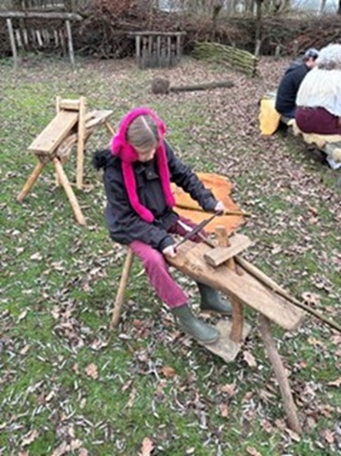 De vrijwilligers van de boerderij lopen rond in schapenvachten, huiden en linnen en wollen kleding. Zelfgemaakte sieraden van stukjes hout met een verhaal en glazen kralen hangen om. Gesmede messen en vuurslagen horen ook tot de standaarduitrusting.