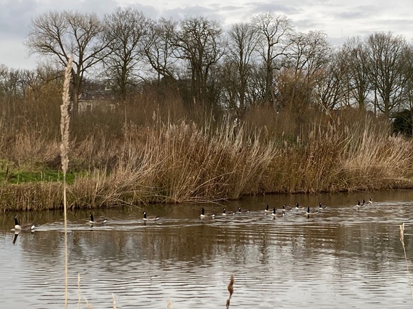 - Volop bezoek in het Markdal. Plukjes Grauwe Ganzen, honderden Meerkoeten en vele duizenden grazende Canadese Ganzen, zonder visumplicht!