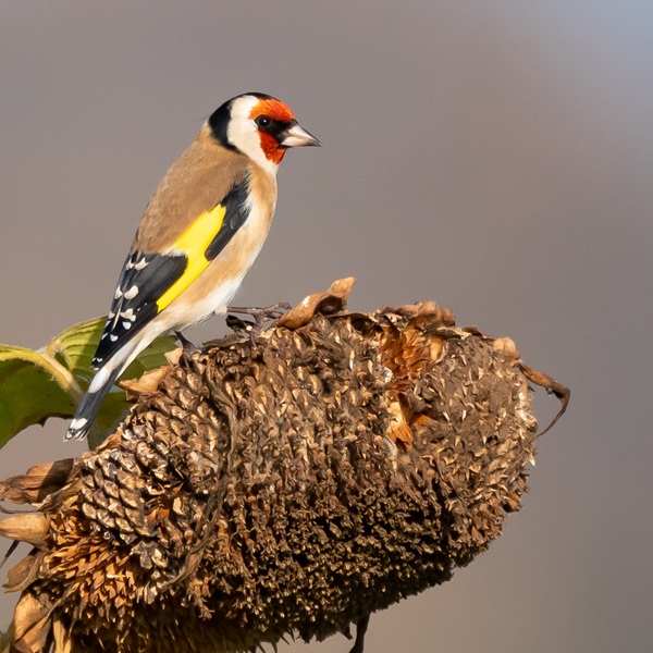 Het wildrooster over, waar meestal de koeien grazen, plotseling valt een vlucht van wel vijfentwintig Putters op een paar meter afstand, op een groep akkerdistels, meteen pikkend aan de zaden en de luizen, een schitterend gezicht die kleuren, vooral dat rood rond de snavel en dat geel, in dit zonnige heldere licht! Ja mooi weer vier Aalscholvers in de dode eik, was toch weer even geleden.